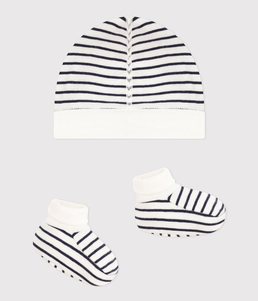 || Petit Bateau || Set met muts en sokjes - Gestreept
