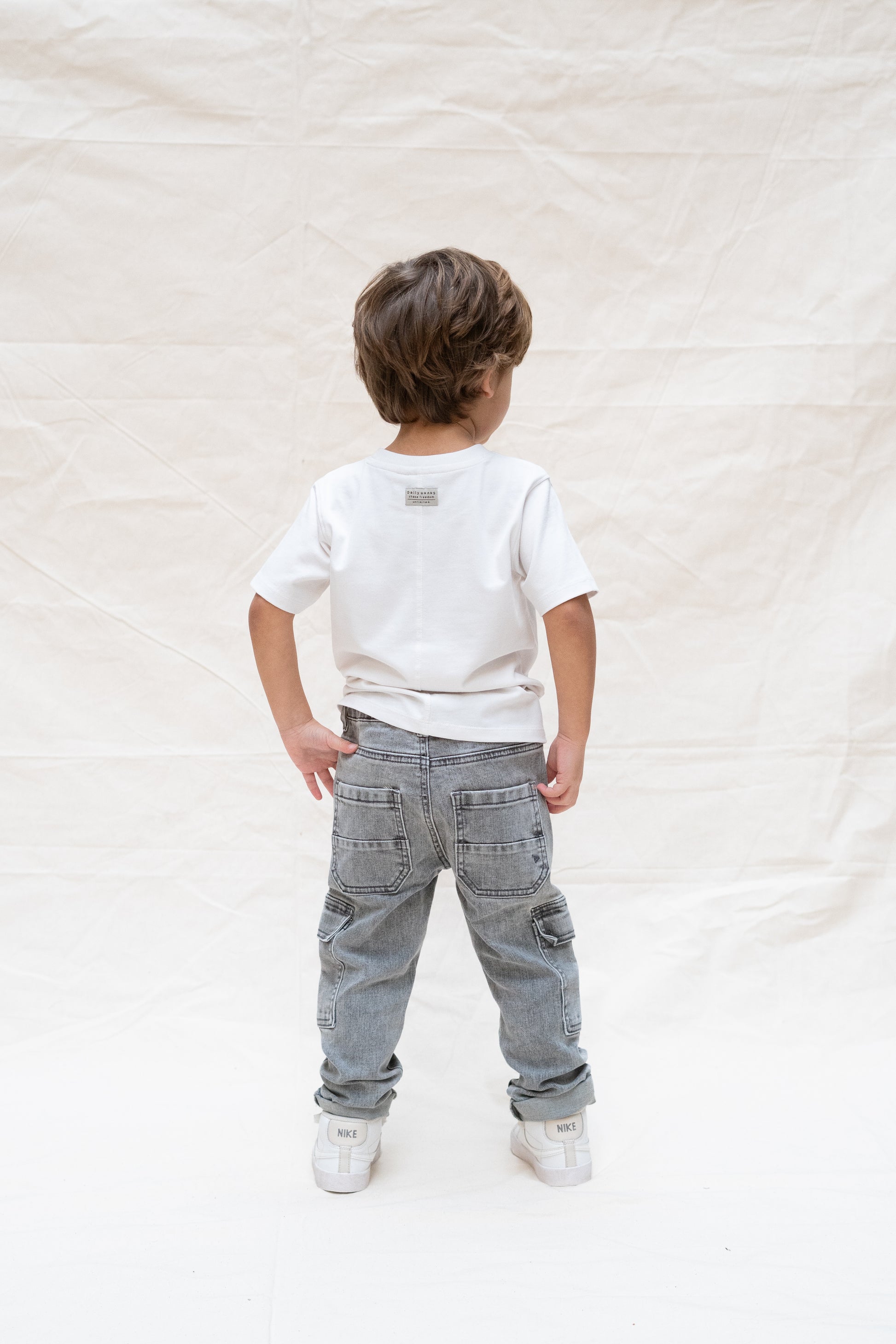 Coole cargo jeans van Daily7Kids met een rechte fit en gemaakt in een comfortabele rekbare stof. De zakken op de zij zorgen voor een relaxte fit. De jeans sluiten met een schuif sluiting en de broek heeft een verstelbare elastieken band aan de binnenkant, maar er is ook ruimte voor een riem.