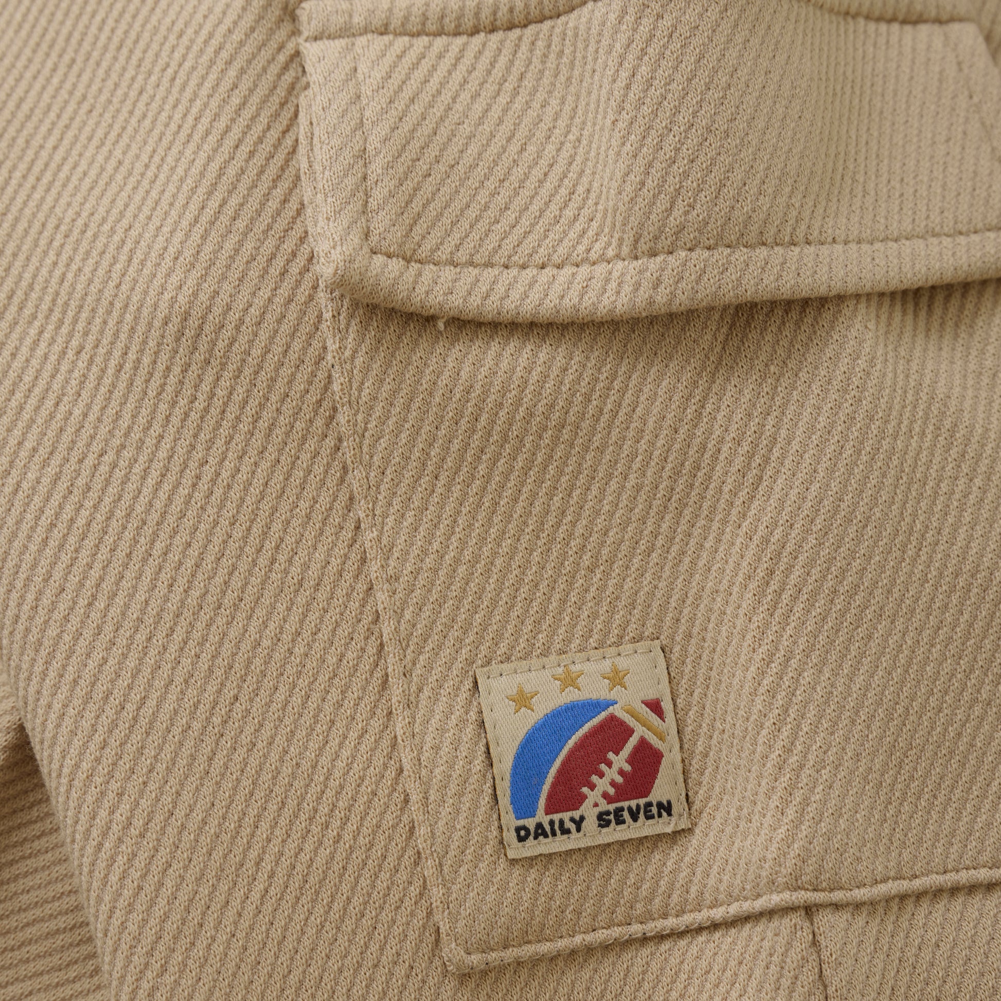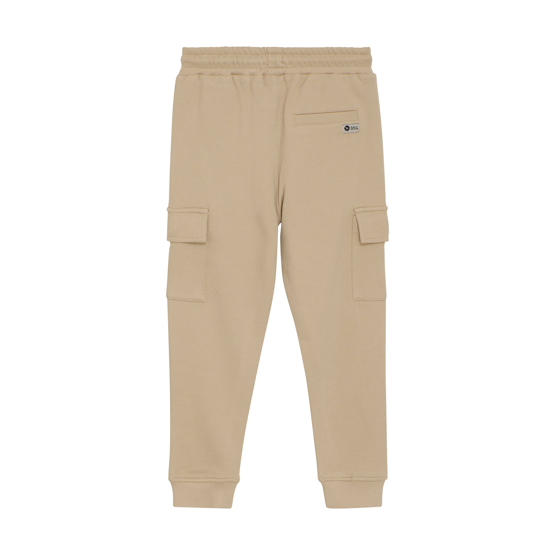 Coole cargo stijl sweatpants van Daily7Kids, gemaakt in een rekbare twill kwaliteit. De broek heeft twee zakken op de zijkant van de benen en een sier zak op de achterkant. De cargo zakken sluiten met klittenband. De jog heeft elastiek aan de uiteinden en een elastieken band die nog aangetrokken kan worden met een koord. Een heerlijk comfortabele broek voor de kids.