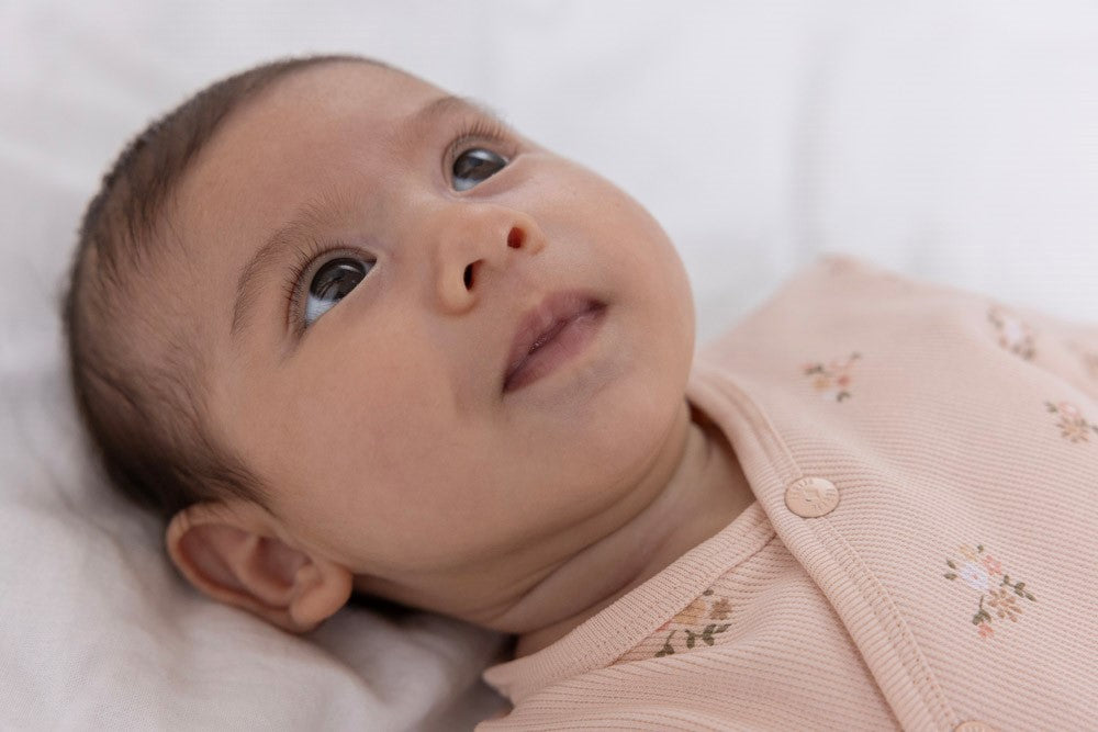 Schattig boxpakje met bloemetjes print van Feetje. Het pakje heeft drukknoppen aan de voorkant. De broekspijpen kunnen omgeslagen worden zodat de voetjes ook lekker warm zijn.