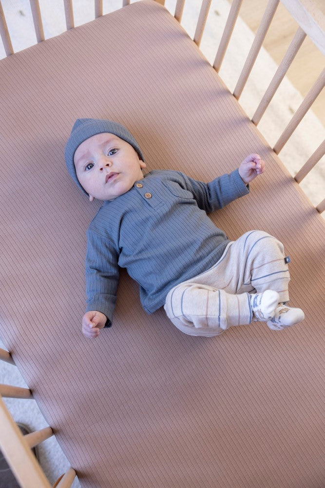 Schattig gestreept baby broekje van Feetje met omgeslagen band.