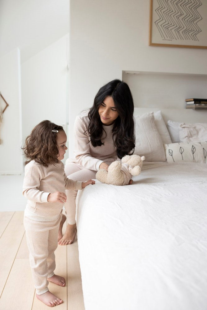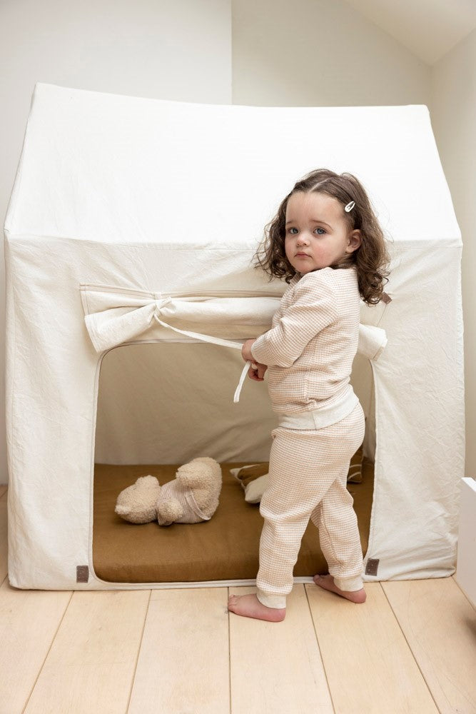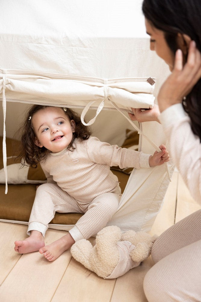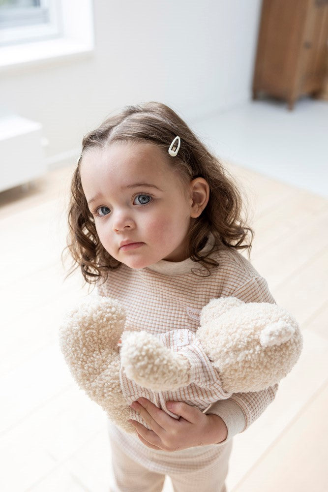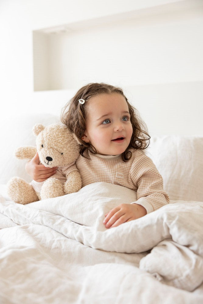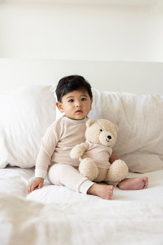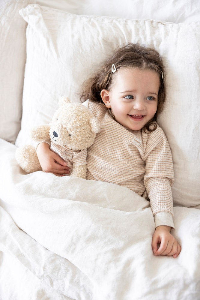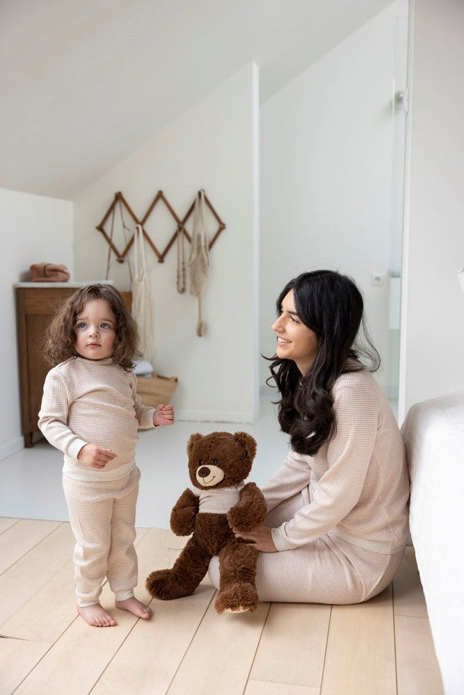 Hoe leuk is het om te winnen met je favoriete knuffel of pop? Dit knuffelshirt is in dezelfde stof en kleur als de bekende wafel pyjama in kleur stroopwafel van Feetje! Zo ligt ook jouw knuffel of pop lekker warm in bed.