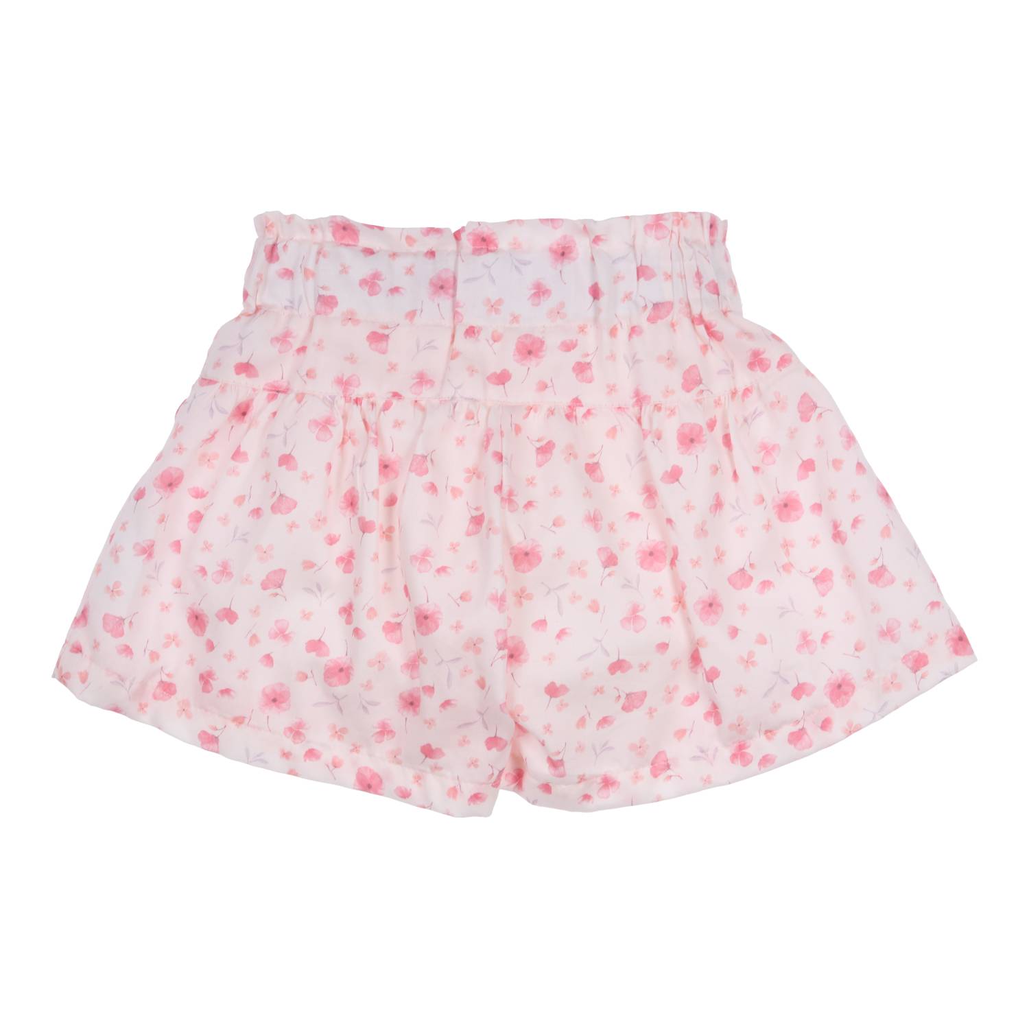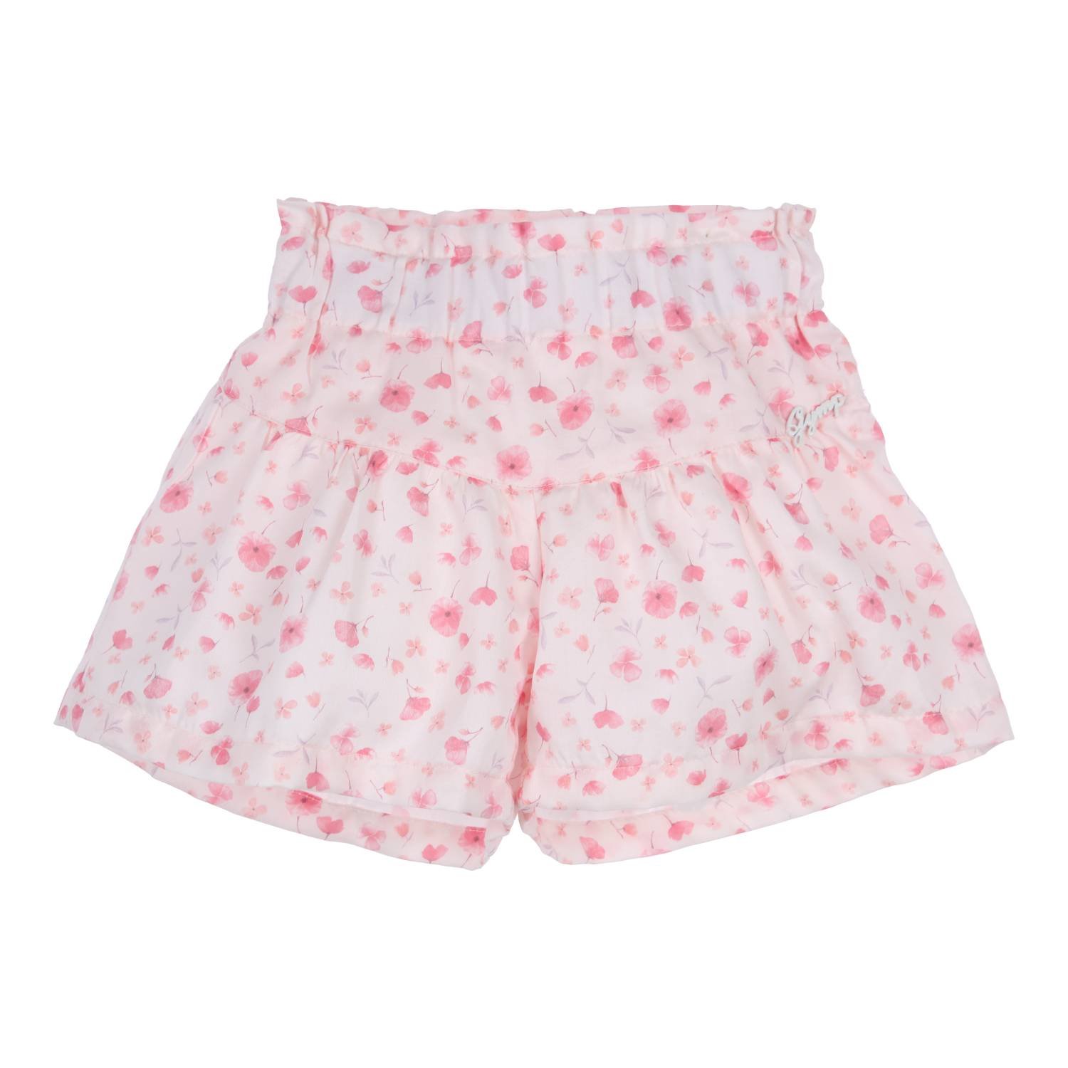 Soepele korte broek met schattige bloemen print van Gymp. De short heeft een elastieken band. Doordat het broekje een beetje wijd valt, lijkt het net een rokje.