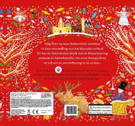 Volg Clara in een betoverend Kerstavontuur in deze navertelling van het klassieke balletverhaal De notenkraker. Ga je mee? Dan zie je hoe de Notenkraker met de Muizenkoning strijdt, ontmoet je de Suikerfee en reis je naar Snoepjesland, waar van alles te beleven valt. Er zit bovendien muziek in dit boek. Op elke bladzijde kun je op een noot drukken, waardoor het verhaal tot leven komt met de muziek van Tsjaikovski’s De Notenkraker. Je kunt zelfs een dansje maken!