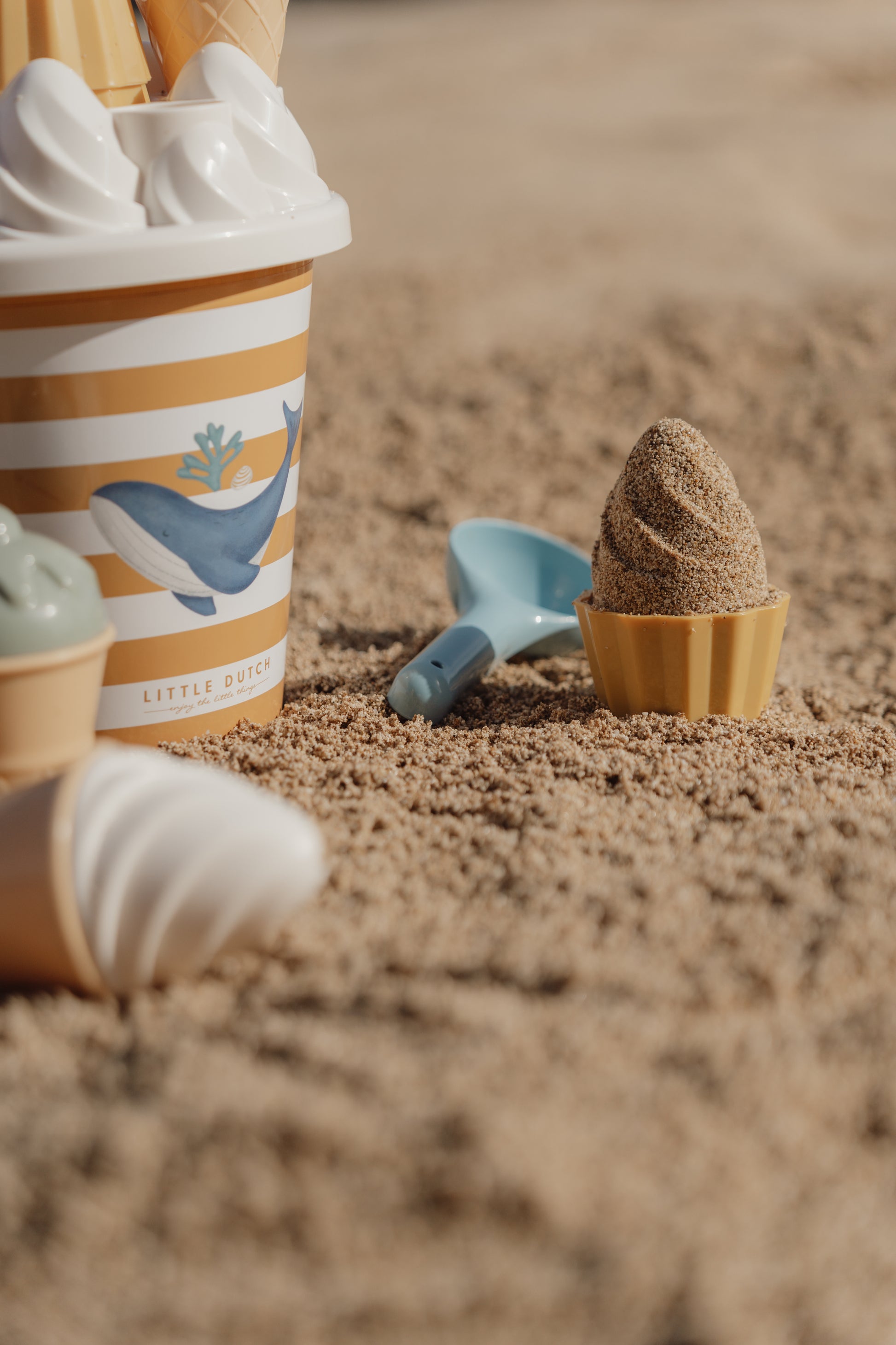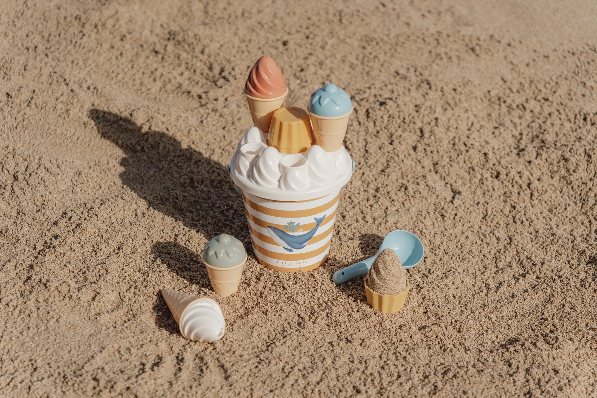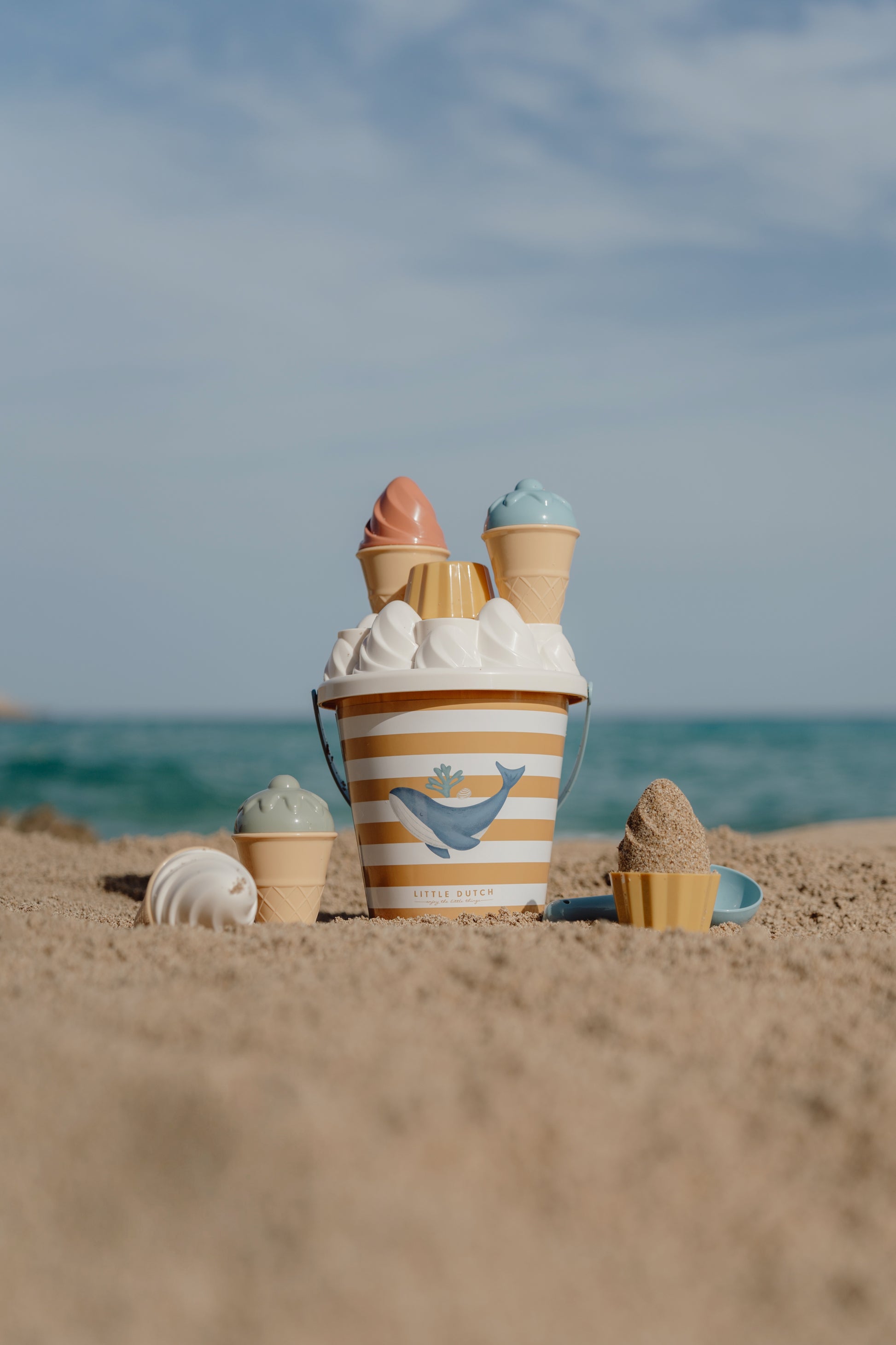 Welk ijsje wil je? Ik heb vanille- en aardbeienijs, en ook cupcakes! Dit is de perfecte Ocean Dreams Pink speelset om mee te nemen naar het strand of de zandbak. Het staat garant voor urenlang speelplezier en fantasierijk spel. Met de ijsschep en 4 vormen zal je kleintje eindeloze hoorntjes en bakjes vullen met ijs met zandsmaak voor iedereen die maar wil. De emmer houdt de set niet alleen fijn bij elkaar, maar helpt ook om water te halen en - met het deksel erop - klaargemaakte ijshoorntjes vast te houden.