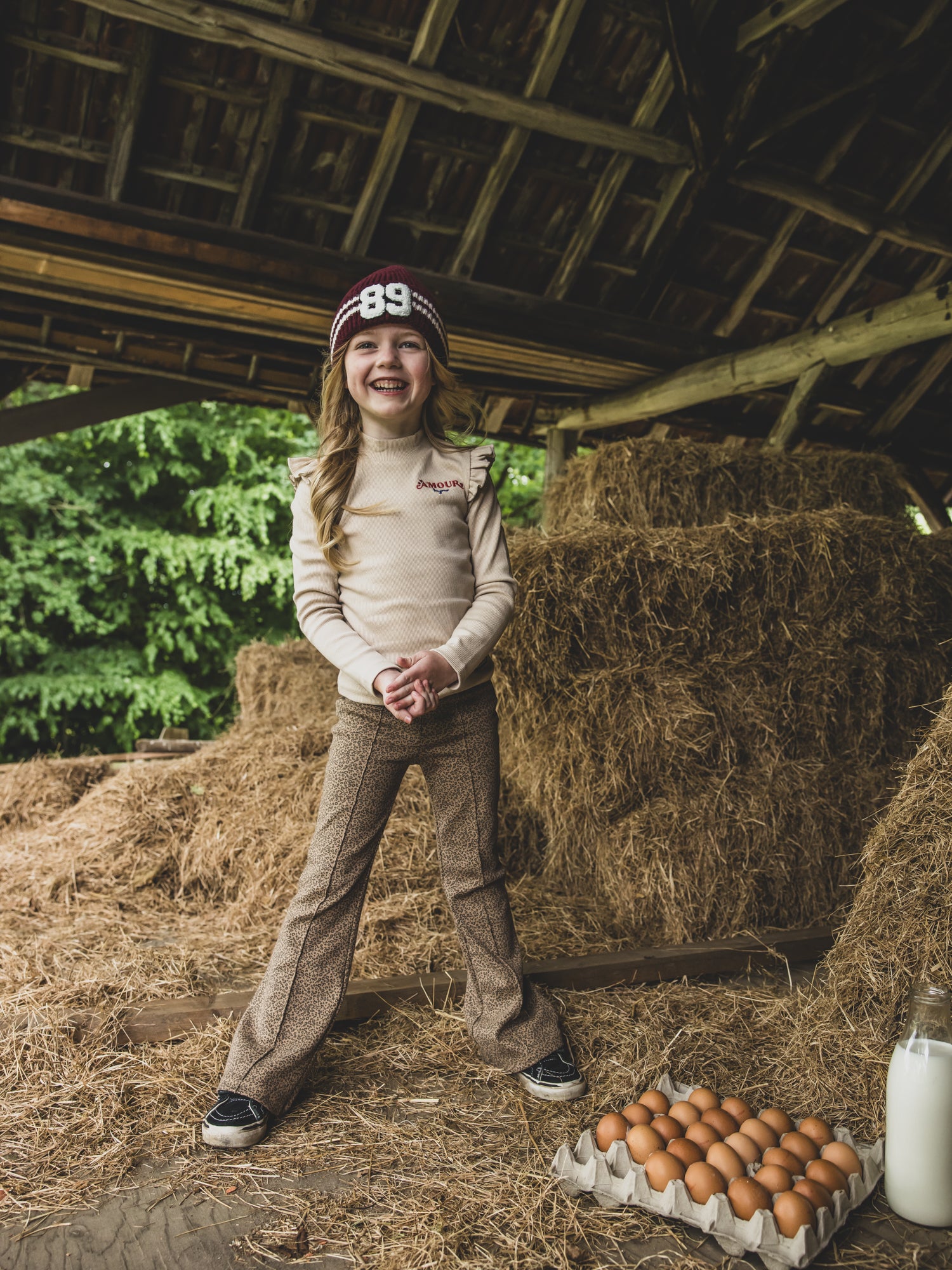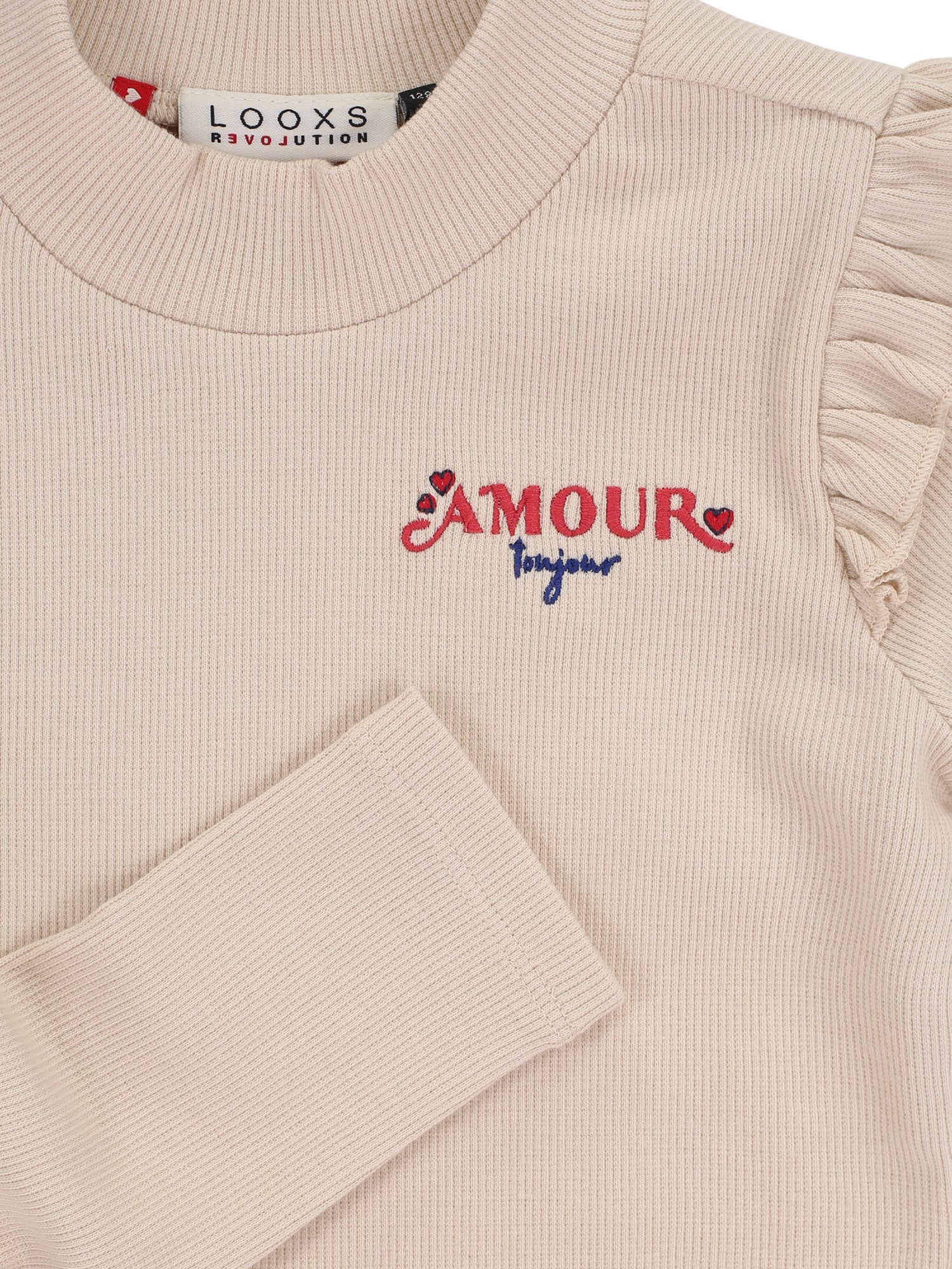 Mooi t-shirt in een wat zwaardere rib jersey kwaliteit, perfect voor in het najaar en de winter. Zandkleurige basis kleur die perfect matcht in deze tweede drop van Looxs Little. Slim fit tot normal fit en een comfy lange lengte.