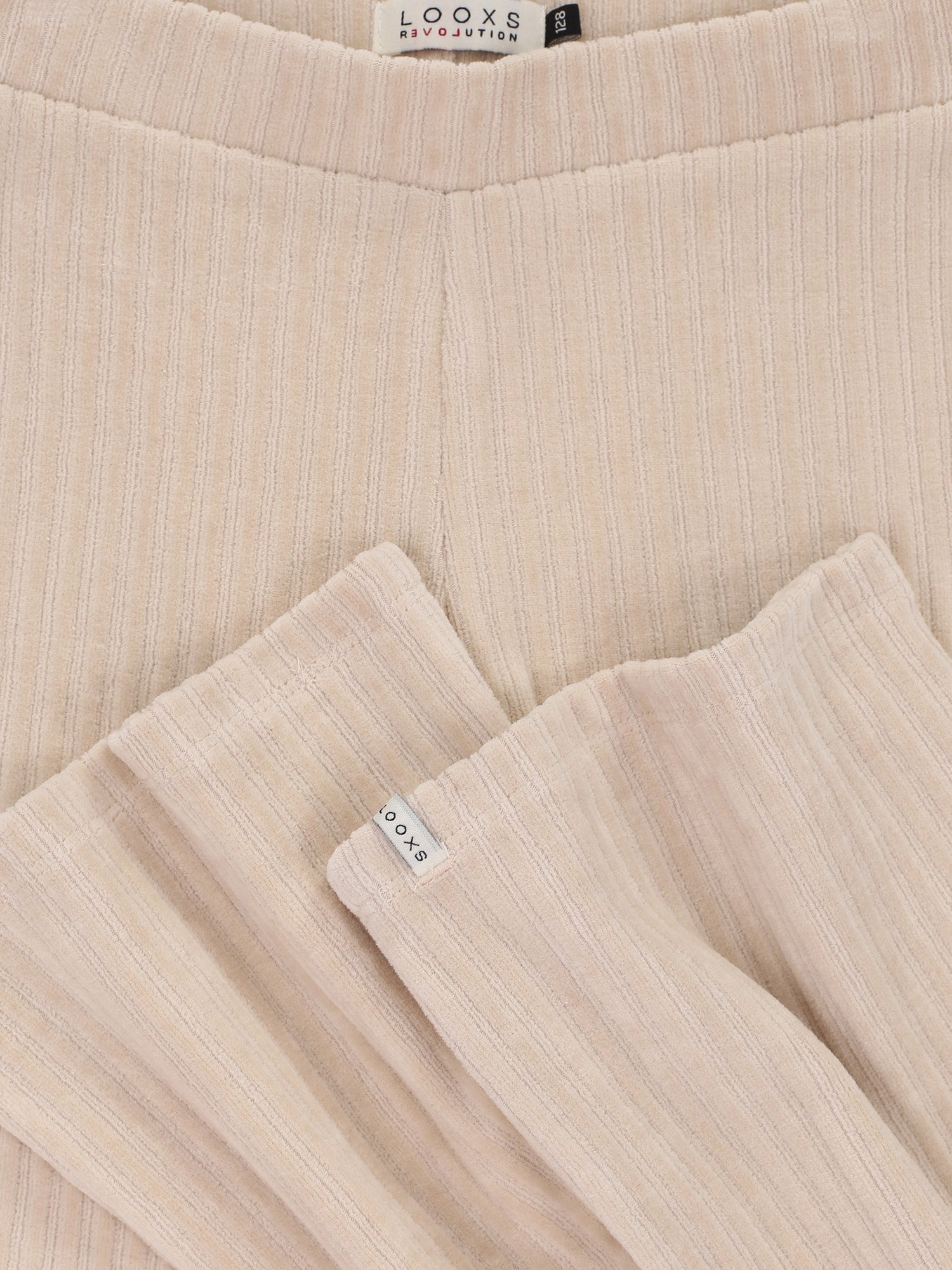Price alert!! Casual & Cool! Broekje heeft lekker veel stretch voor de ultieme comfy fit. Uni Beige kleur een perfecte match in deze eerste levering van LOOXS little drop 1. Lange lengte met een flared fit. Elastische tailleband.