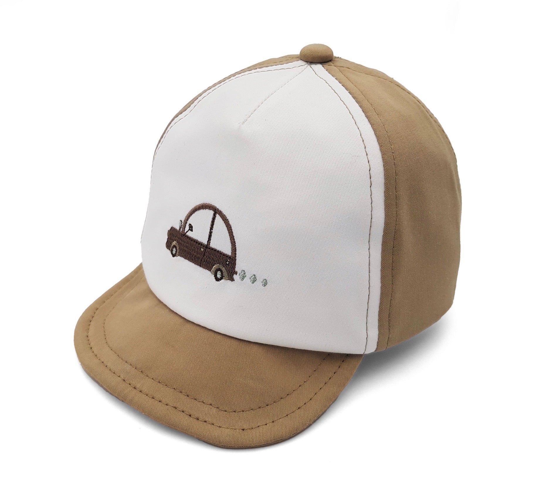 Zachte katoenen pet van Maximo met een geborduurde auto, speciaal voor kleine hoofdjes. De pet is met behulp van klittenband ter verstellen aan de achterkant.
