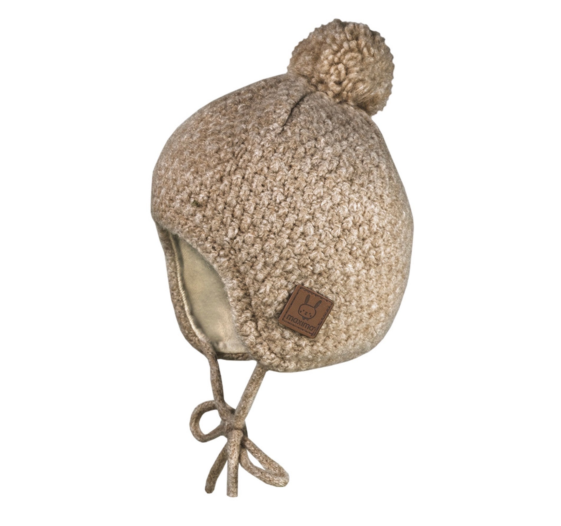 || Maximo || Muts met pompon en jersey voering - Bruin