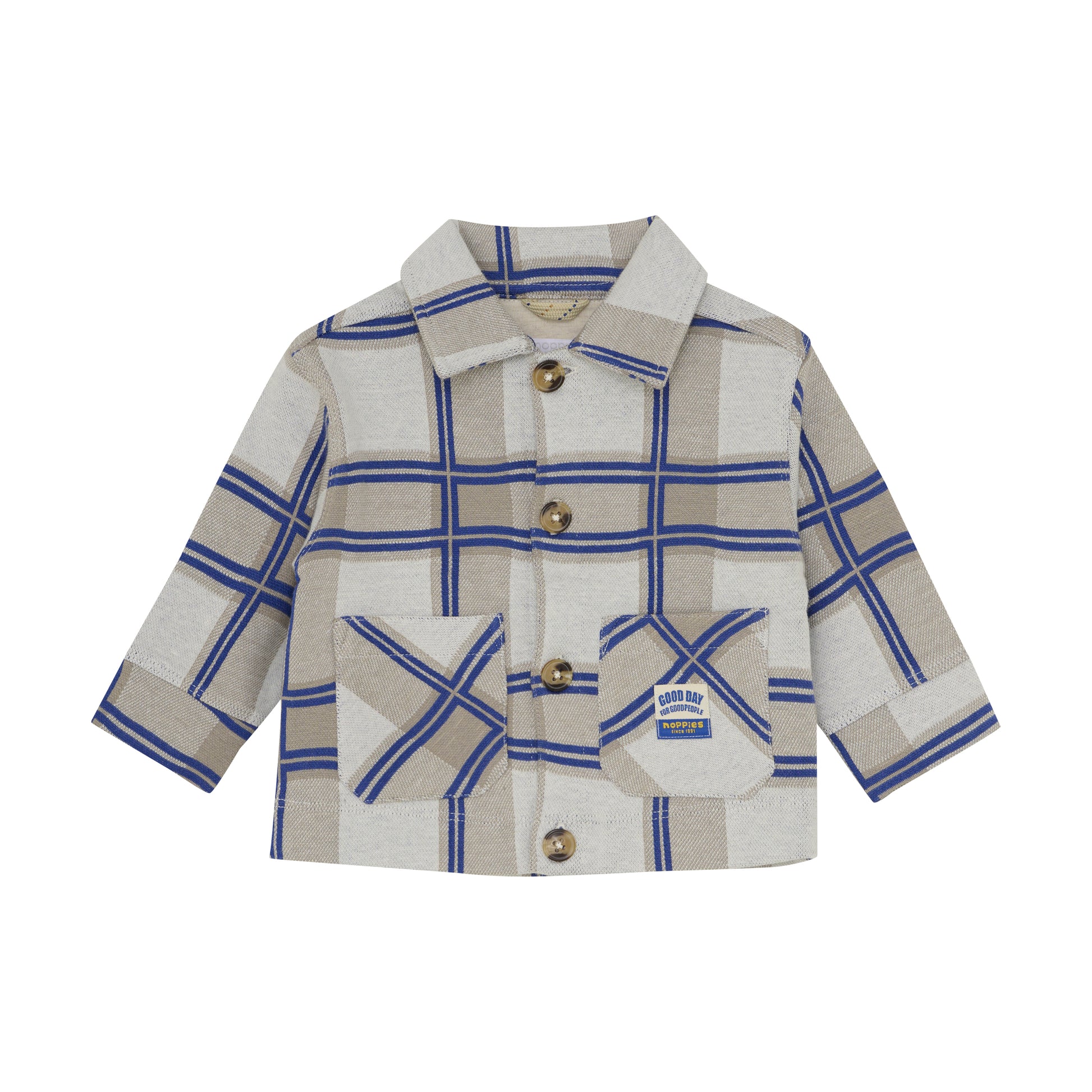 Jongens vest Senones van Noppies Baby, gemaakt van GOTS-gecertificeerd katoen (CU1392474). Het vest heeft een ruitpatroon, kraag, lange mouwen en knoopsluiting.