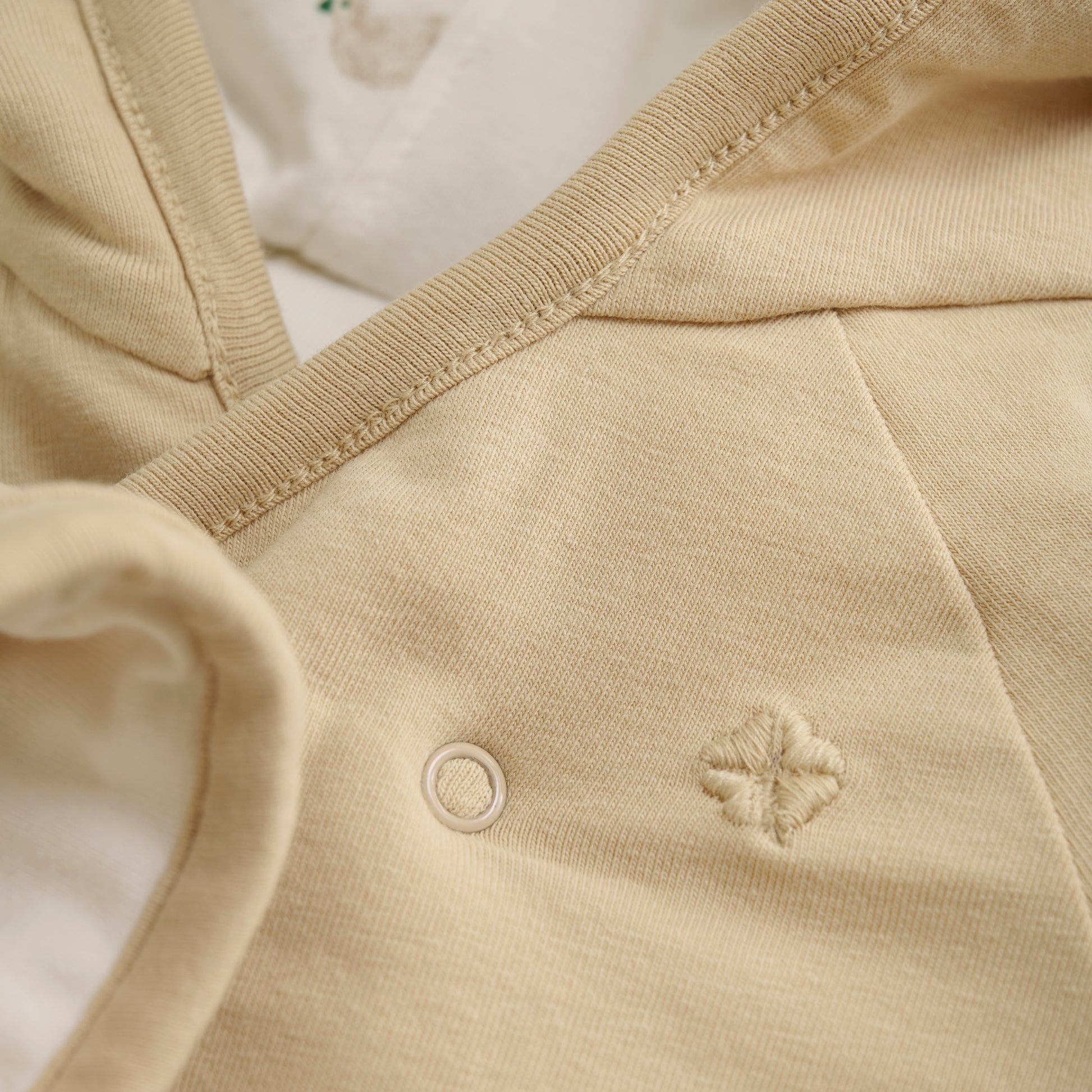 Unisex indoor jasje Nuru van Noppies Baby is tweezijdig te dragen. Het vestje heeft een geprinte en een effen kant, leuk om af te blijven wisselen! Het vestje heeft een capuchon voor extra coziness en warmte voor je kleine. De stretch in het zachte katoen zorgt voor veel draagcomfort. De drukknoopjes maken het verkleden en verschonen een stuk makkelijker. Zo fijn!