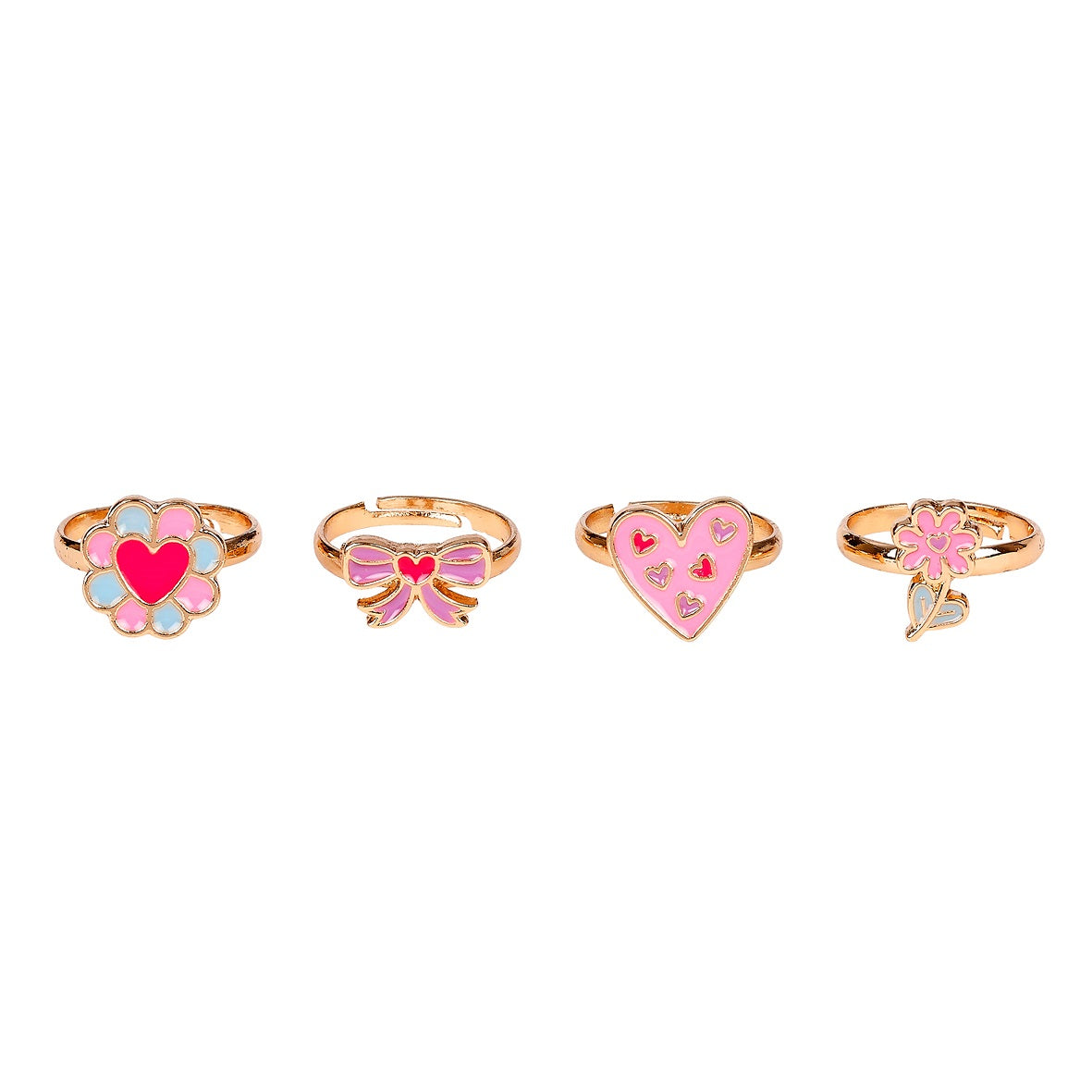 Kinderring die op maat gemaakt kan worden door het bandje in of uit te schuiven. Er zijn 4 verschillende varianten. Elke ring is verpakt in een doosje.