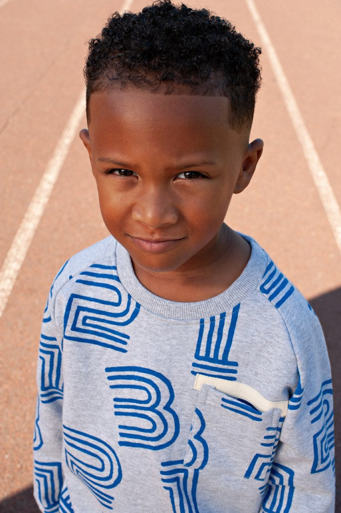 Stoere en rekbare sweater met een print van cijfers in kobalt van Sturdy.