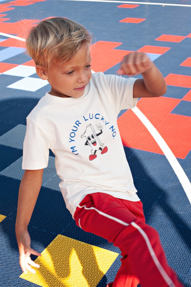 T-shirt met een print op de voorkant van het cijfer 1 en de tekst ‘I’m your lucky nr.1’