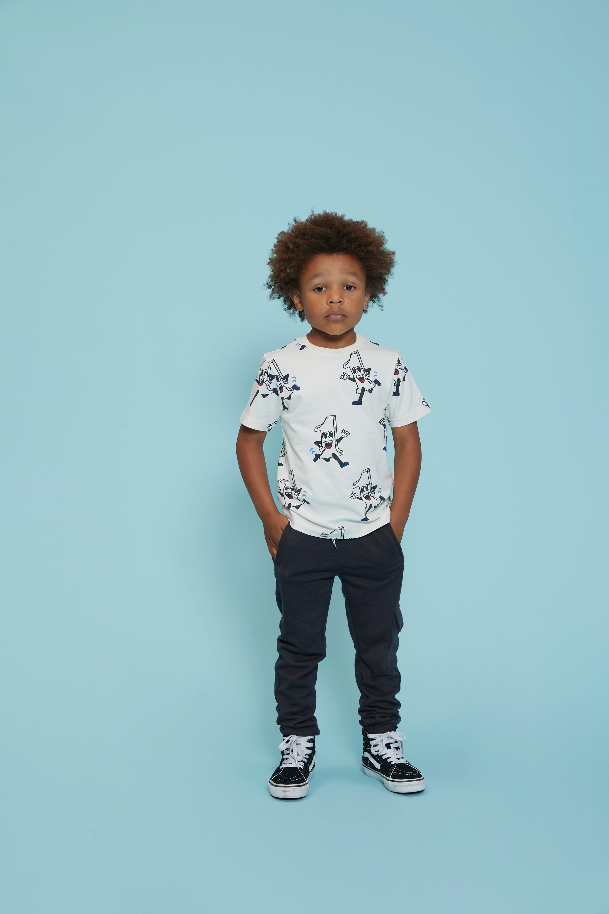 T-shirt met een allover print van het cijfer 1.