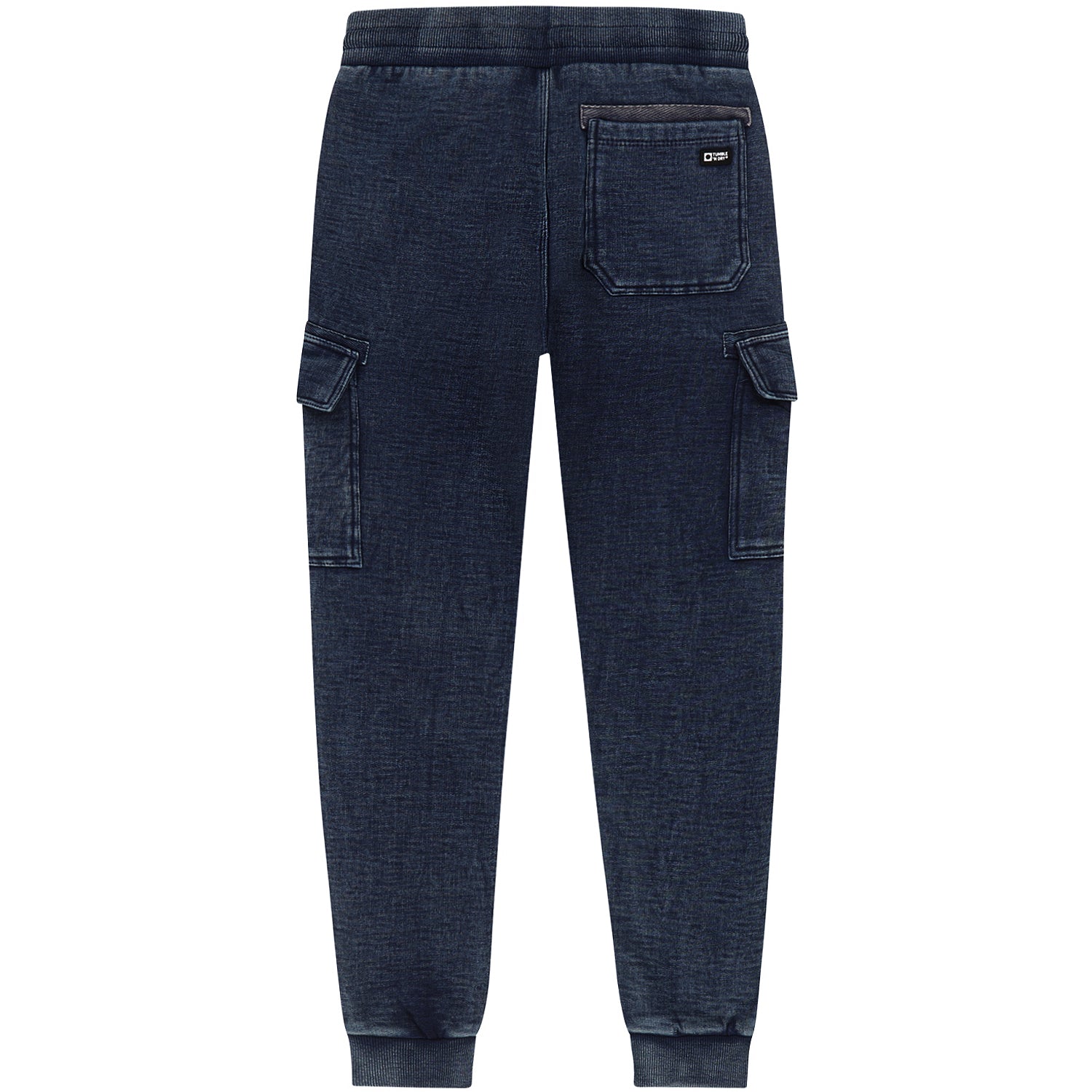 Deze donkerblauwe, indigo joggingbroek is voorzien van een elastieke tailleband en rijgkoorden, twee cargozakken en twee steekzakken. Let op! Door de speciale wassing is elk stuk uniek en kan de kleur van de broek iets vervagen na het wassen en of door veelvuldig dragen.