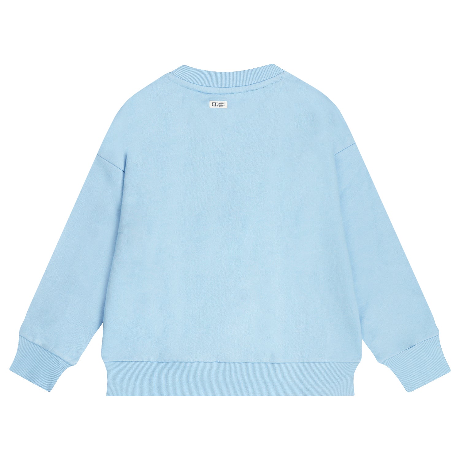 Deze schattige sweater, in een lichtblauwe tint, is een perfecte keuze voor meisjes die houden van stijl en comfort. Gemaakt van 100% biologisch katoen met een slubstructuur, biedt deze sweater een zachte French Terry afwerking en een lichte geborstelde binnenkant. Het ontwerp valt op door de speelse opdruk "La Dolce Vita" in frisse gele letters, gecombineerd met een frisse citroenen print die zorgt voor een vrolijke uitstraling. De regular fit en de fijne ribboorden maken deze sweater comfortabel en geschikt voor dagelijks gebruik.